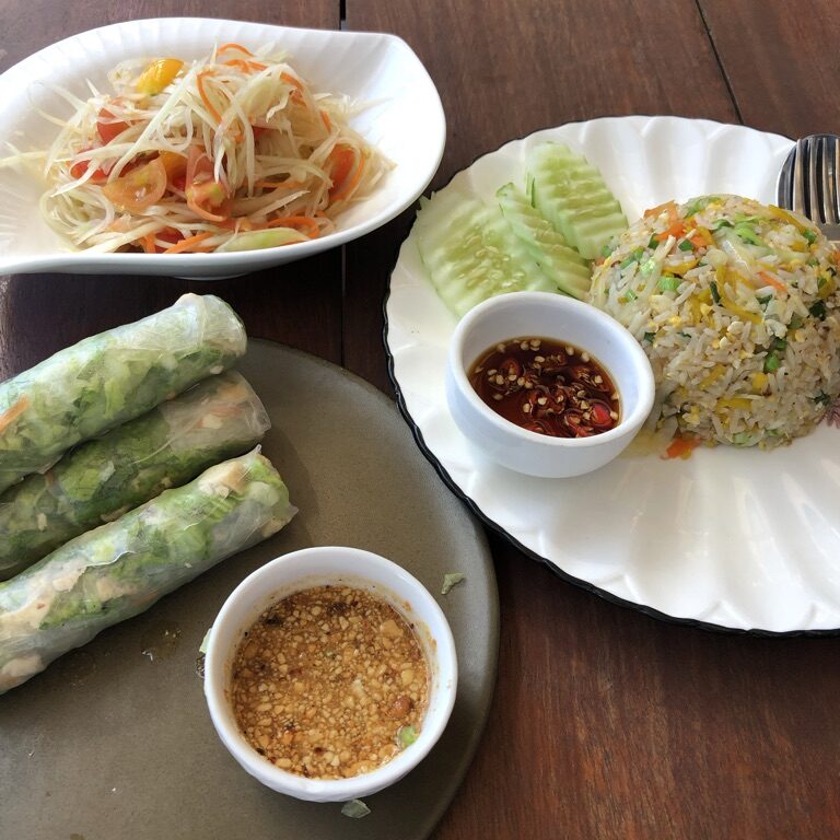 生春巻き、ソムタム、チャーハンを注文。ここ数日の野菜不足解消のため、ヘルシー路線で。