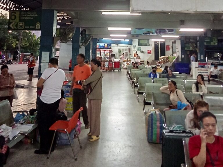 7:00発のビエンチャン行きのチケットを85バーツで購入。ベンチに座って発車時刻を待ちました。