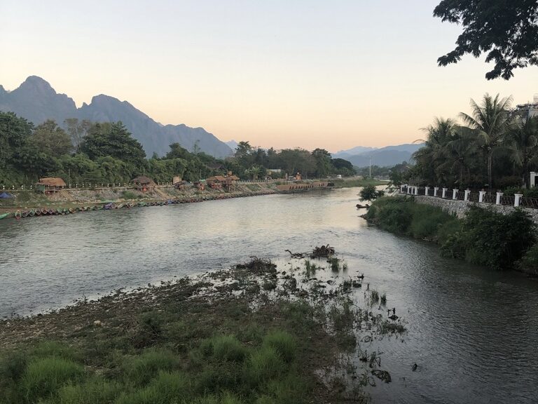 まだ人々の活動が始まっていないこの時間帯。静寂に包まれた田舎町バンビエン。