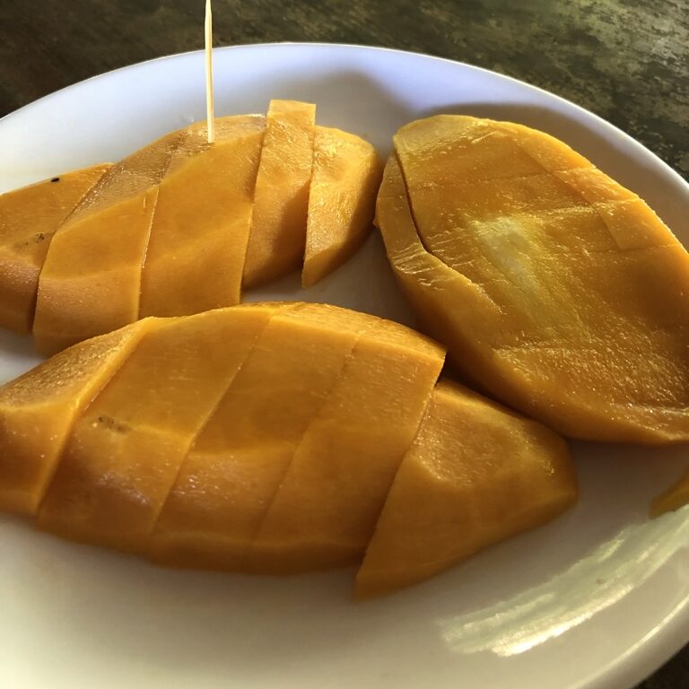 洞窟から降りてくると屋台を発見。スムージーが売っていたのですが、小腹が減っていたこともありマンゴーを切って出してくれとお願いしました。