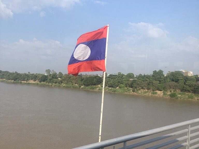 とその時、待っていた瞬間が訪れました!ほんっの一瞬だけタイとラオスの国旗が並んでいるのが見えたのです!