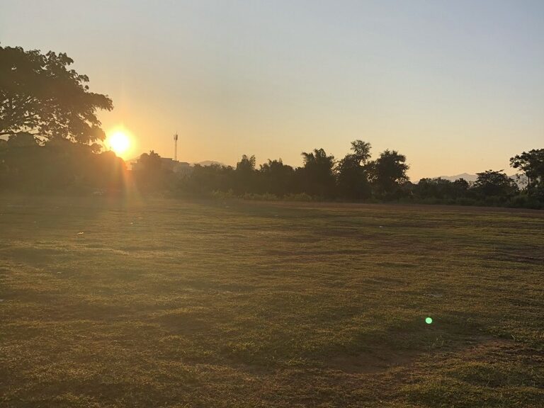 自然豊かなバンビエンを散歩するために早起き。まだ薄暗い街を目的地もなく一人歩き始めました。